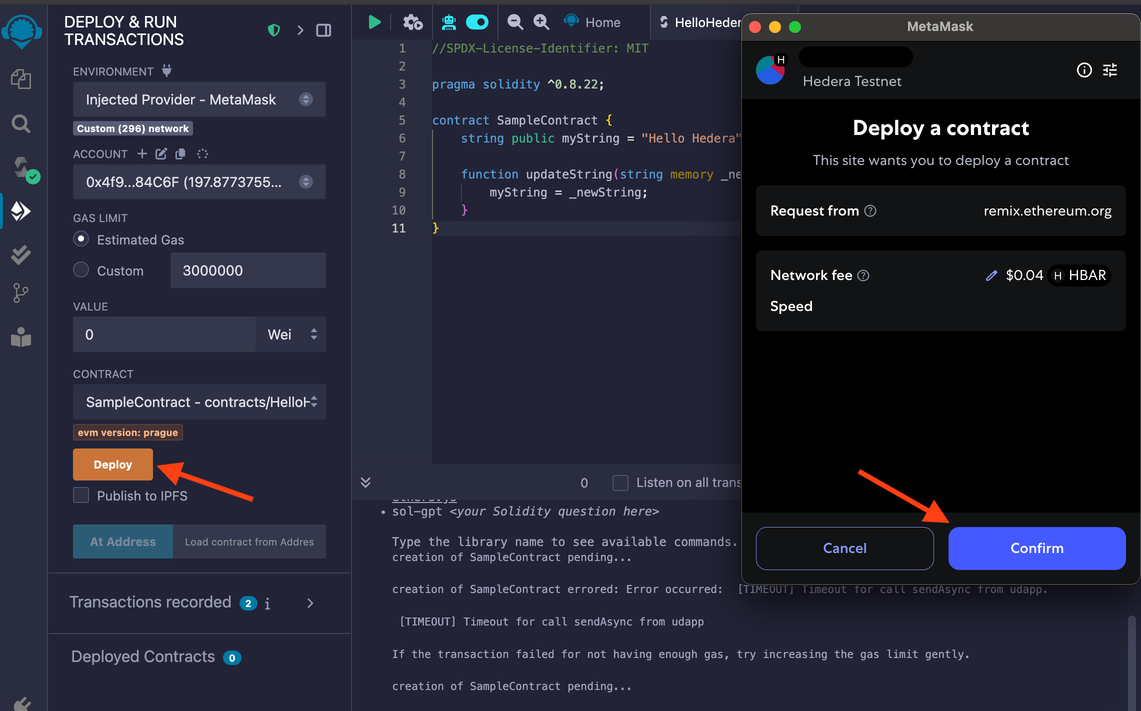 Navigate to the Hedera Faucet to get testnet HBAR tokens necessary for deploying a smart contract.Deploy a Smart Contract Using Remix