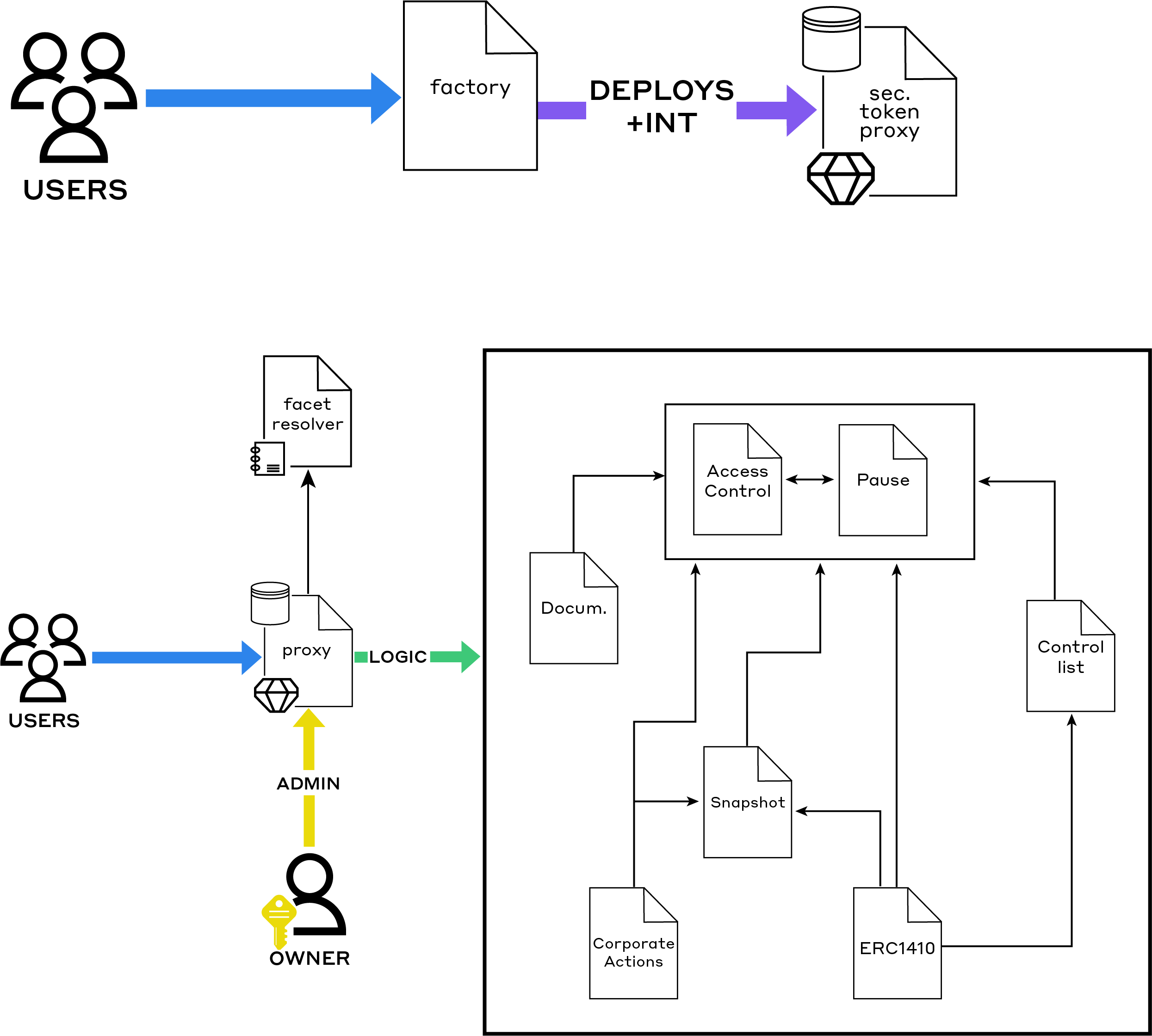For those interested in technical architecture, ATS utilizes factory contracts to create new digital securities, resolver contracts to manage and execute specific functions, and proxy contracts to enable seamless upgrades. When tokenization is initiated, two smart contracts are deployed, these contracts work together with the proxy contract to create, operate, and upgrade digital securities.- Factory Contract: This contract is used to create new digital securities, like bonds or equities. It has methods like