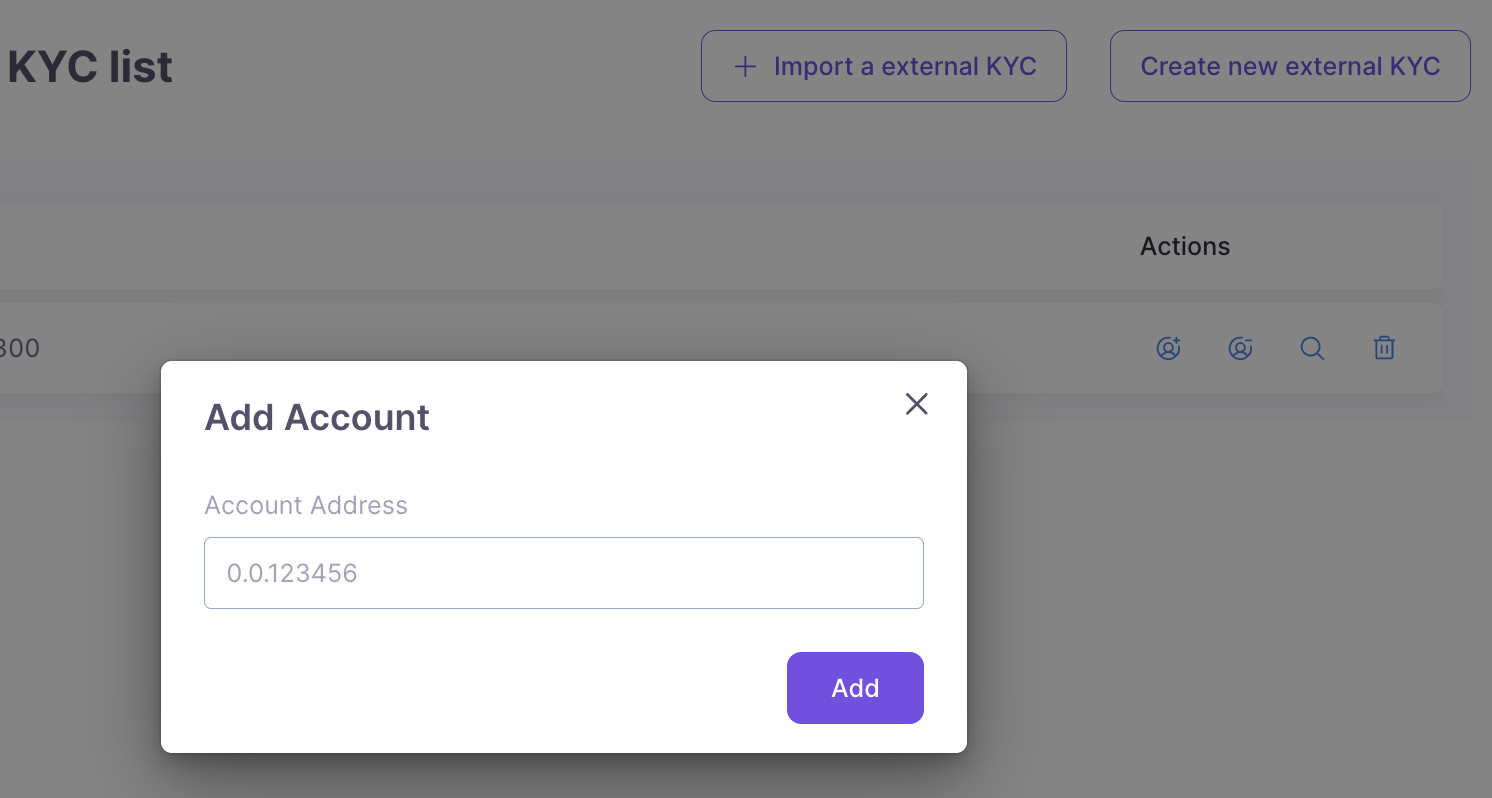 You have two ways to manage KYC. Choose based on your needs.External KYC List
